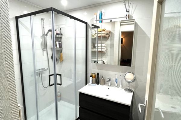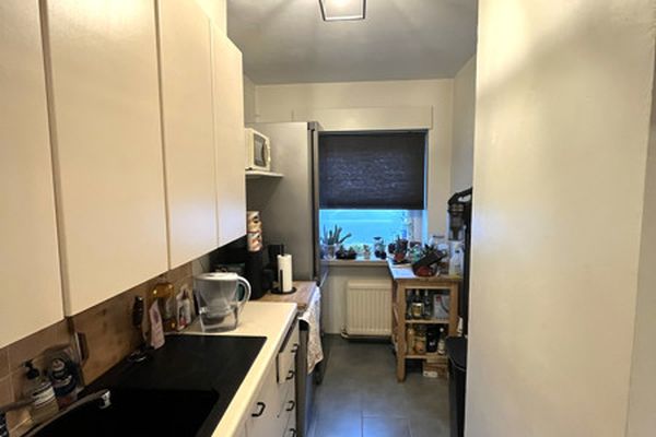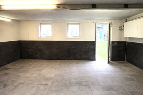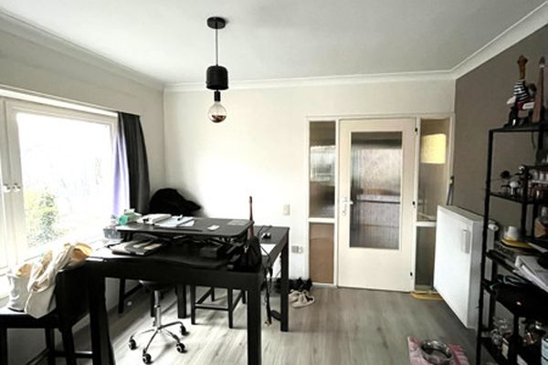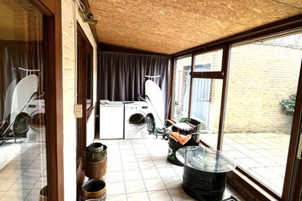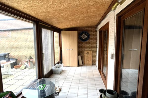 Nette rijwoning bestaande uit de inkom, apart toilet, berging, woon- leefruimte, ingerichte keuken, 2 slaapkamers met terras, tuin, garage en een klein magazijn (ongeveer 30 m²).