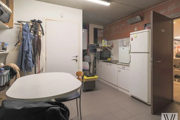Praktische keukenruimte en extra berging achteraan. Vloerverwarming aanwezig