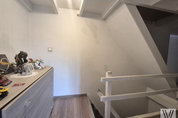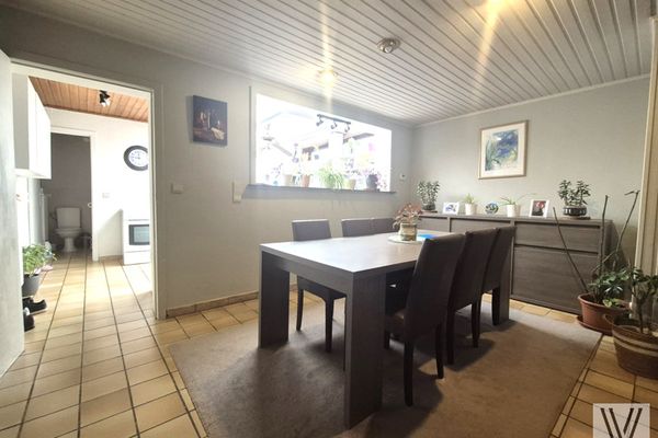 Centraal gelegen op te frissen/te renoveren woning bestaande uit de inkomhal met op het gelijkvloers een slaapkamer/bureau, volgend de woon/leefruimte met aansluitend de keuken, en een tuin met plaats voor de wagen. Op het eerste verdiep zijn er 2 slaapkamers en een zolder. Toilet. Badkamer.